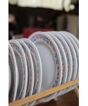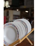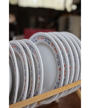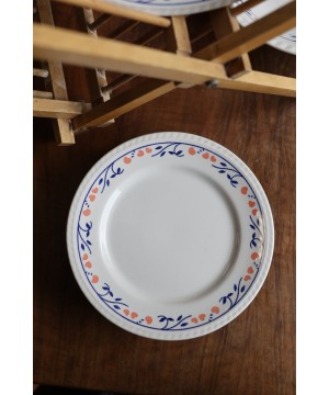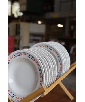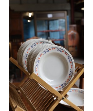 Avec son motif délicat de petites fleurs rouges et feuillage bleu, ce service apporte une touche chaleureuse et rétro à vos repas du quotidien comme à vos grandes occasions. Idéal pour les amateurs de vaisselle ancienne, de style vintage campagnard ou pour compléter une belle table de brocante.