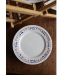 Charmant service de table Keradur Oxford au décor floral bleu et rouge, typique des arts de la table français des années 70-80.