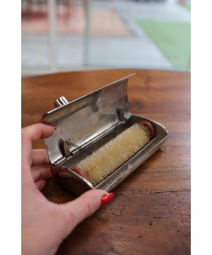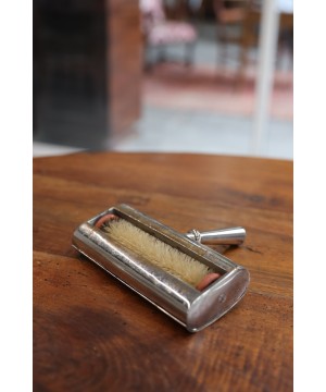 Ajoutez une touche d’élégance vintage à votre intérieur avec ce râcleur de table ancien en métal argenté, un objet authentique autrefois utilisé pour nettoyer les miettes après les repas.