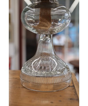 Apportez une touche authentique et chaleureuse à votre intérieur avec cette lampe à huile ancienne en verre, un véritable objet d’époque idéal pour les amateurs de décoration vintage et rustique.