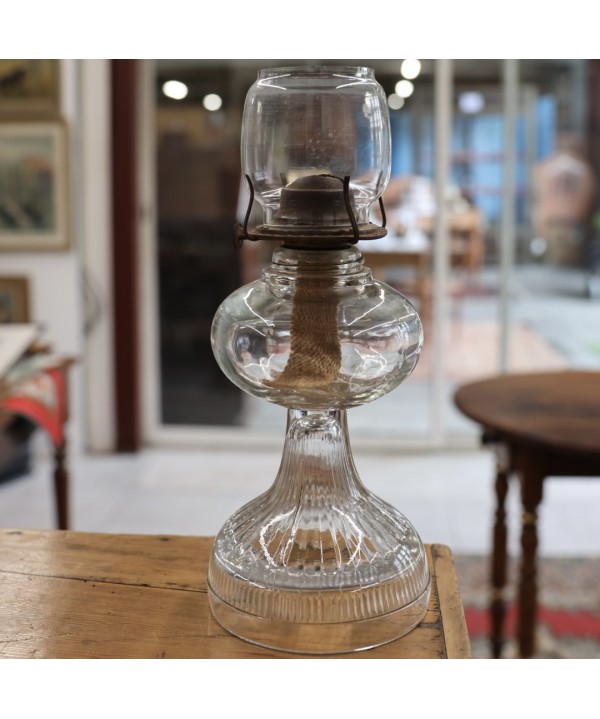 Dotée d’un réservoir en verre moulé, d’une cheminée transparente et d’une mèche d’origine, cette lampe se distingue par son charme intemporel et son élégance simple.